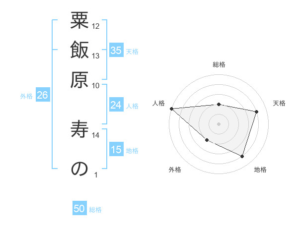 粟飯原 寿のさんの総格は50画の2点!