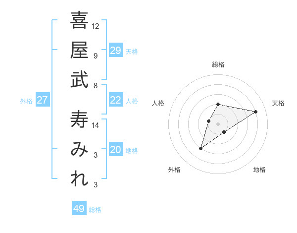 喜屋武 寿みれさんを姓名の画数から五運を鑑定