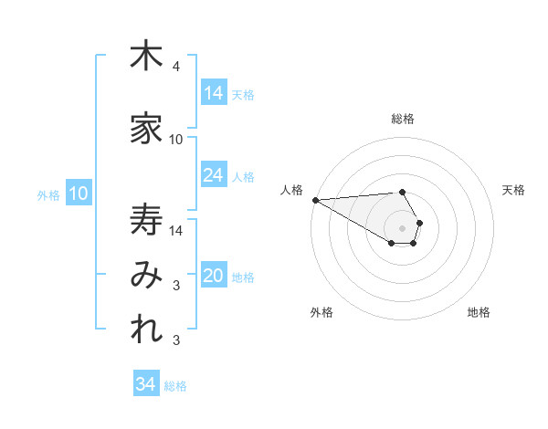 木家 寿みれさんの天格は14画の1点!