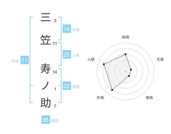 三笠 寿ノ助さんを姓名の画数から五運を鑑定