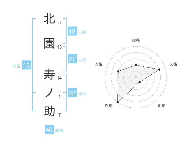 北園 寿ノ助さんを姓名の画数から五運を鑑定