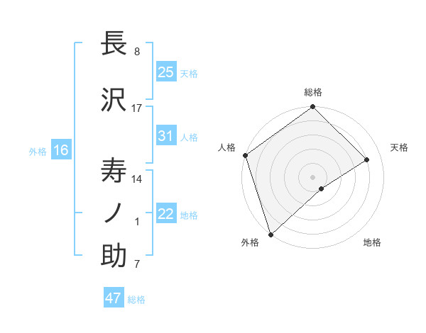 長沢 寿ノ助さんを姓名の画数から五運を鑑定