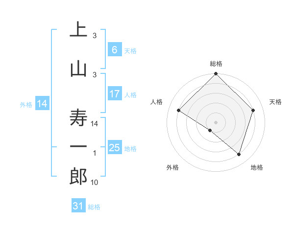 上山 寿一郎さんの総格は31画の5点!