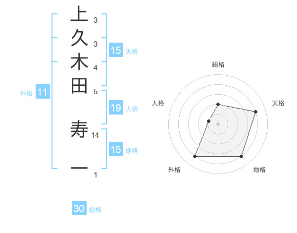 上久木田 寿一さんを姓名の画数から五運を鑑定