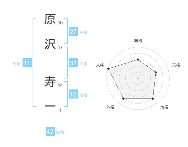 原沢 寿一さんを姓名の画数から五運を鑑定