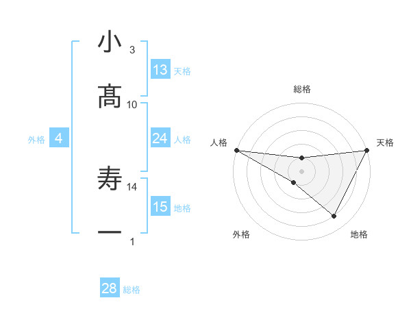 小髙 寿一さんの天格は13画の5点!