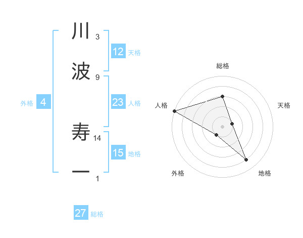 川波 寿一さんの総格は27画の3点!