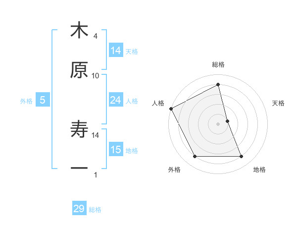 木原 寿一さんの総格は29画の4点!