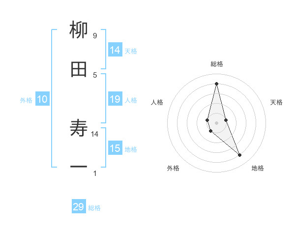 柳田 寿一さんの総格は29画の4点!
