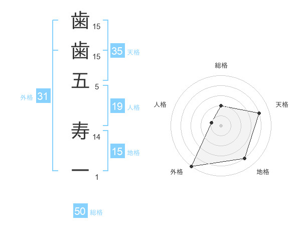 歯歯五 寿一さんの総格は50画の2点!