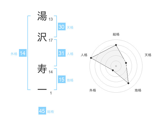 湯沢 寿一さんを姓名の画数から五運を鑑定
