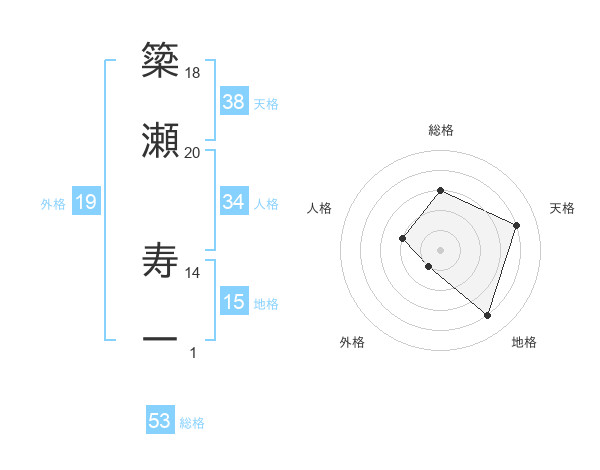 簗瀬 寿一さんの天格は38画の4点!