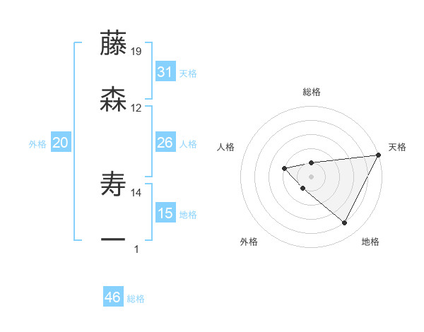 藤森 寿一さんの天格は31画の5点!