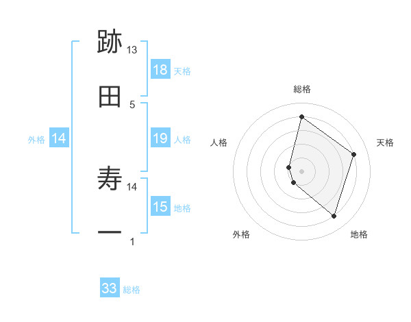 跡田 寿一さんの総格は33画の4点!