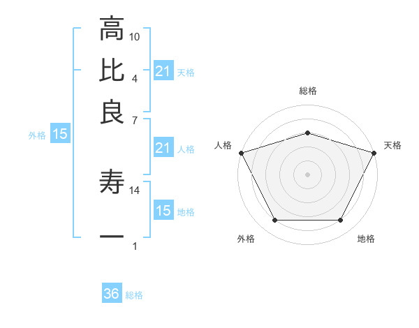 高比良 寿一さんの天格は21画の5点!