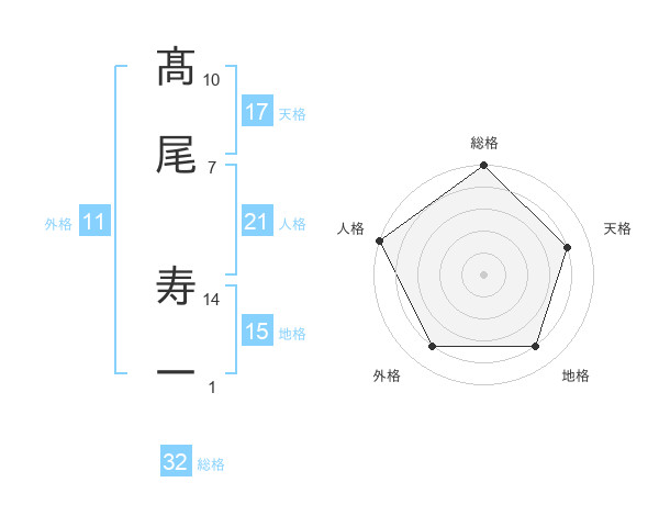 髙尾 寿一さんを姓名の画数から五運を鑑定