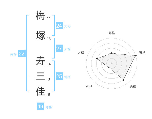 梅塚 寿三佳さんを姓名の画数から五運を鑑定