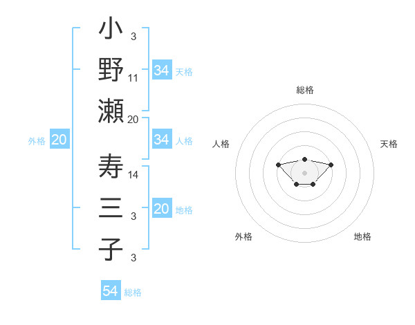 小野瀬 寿三子さんを姓名の画数から五運を鑑定