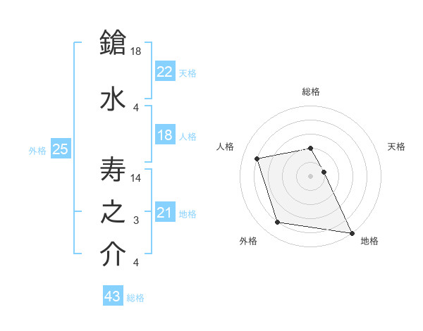 鎗水 寿之介さんの地格は21画の5点!