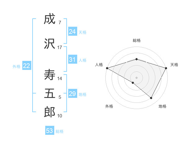 成沢 寿五郎さんの総格は53画の3点!