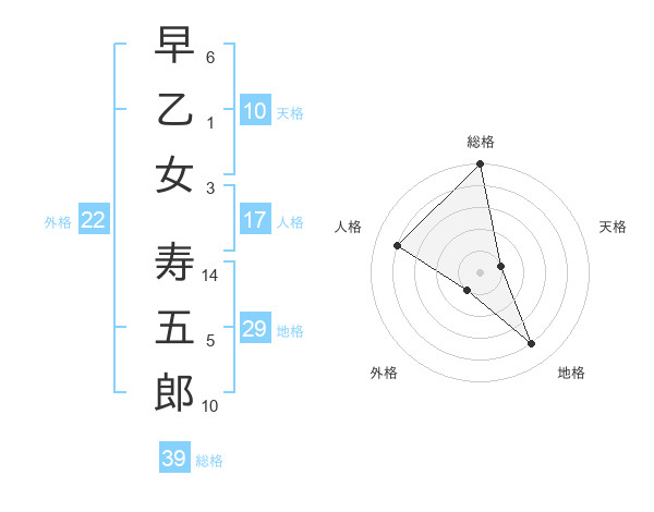 早乙女 寿五郎さんの総格は39画の5点