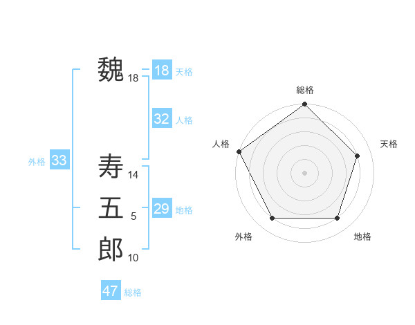 魏 寿五郎さんの総格は47画の5点!
