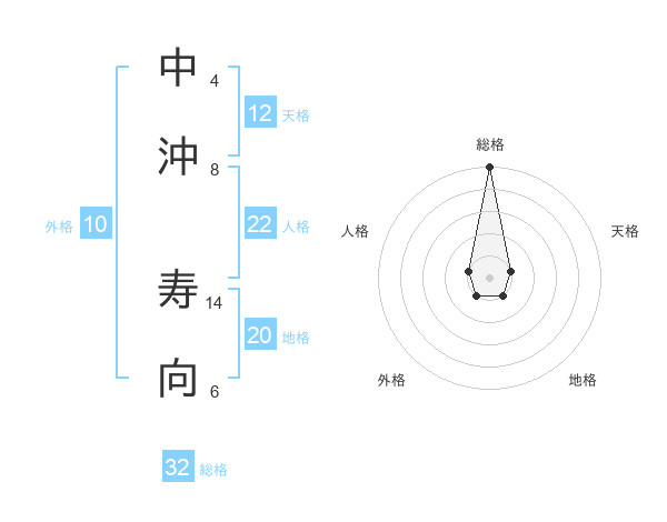 中沖 寿向さんを姓名の画数から五運を鑑定