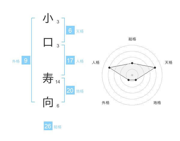 小口 寿向さんの総格は26画の2点!