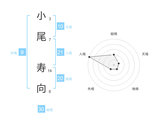 小尾 寿向さんの総格は30画の2点!