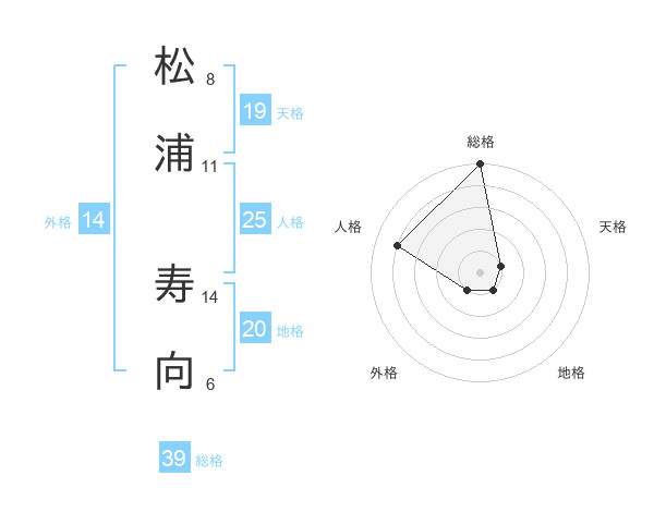 松浦 寿向さんの総格は39画の5点!