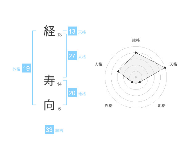 経 寿向さんの総格は33画の4点!