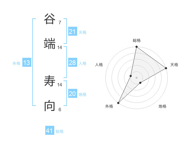 谷端 寿向さんを姓名の画数から五運を鑑定