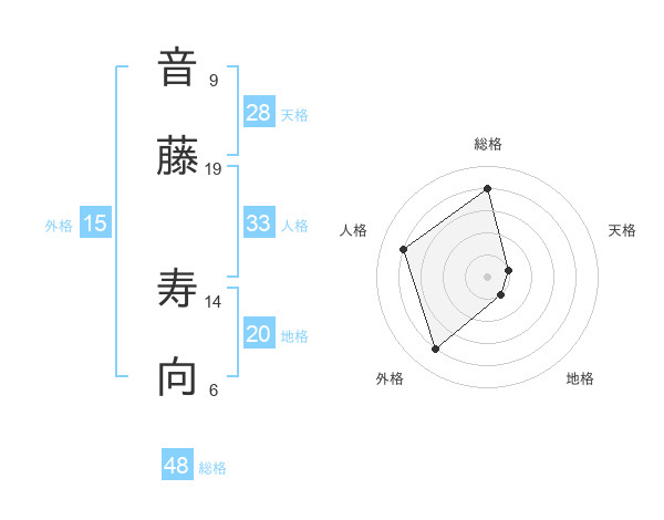 音藤 寿向さんを姓名の画数から五運を鑑定