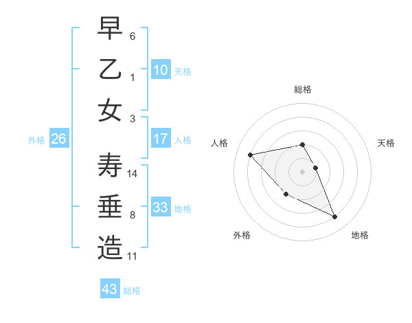 早乙女 寿垂造さんを姓名の画数から五運を鑑定