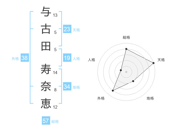 与古田 寿奈恵さんを姓名の画数から五運を鑑定