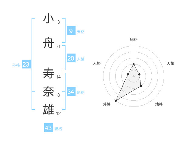 小舟 寿奈雄さんを姓名の画数から五運を鑑定