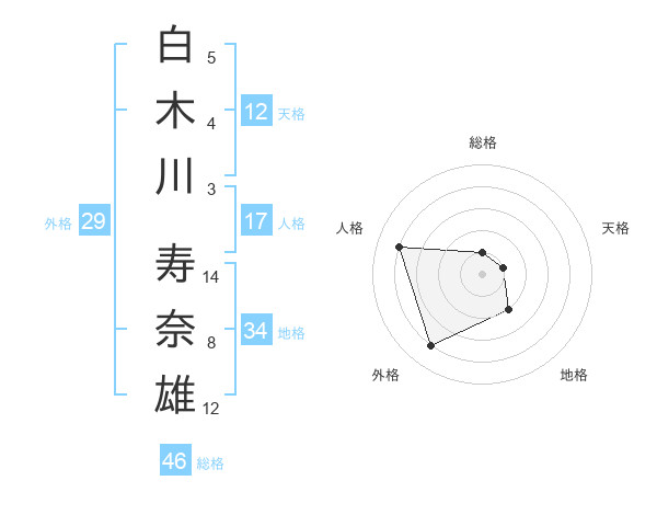 白木川 寿奈雄さんの総格は46画の1点!