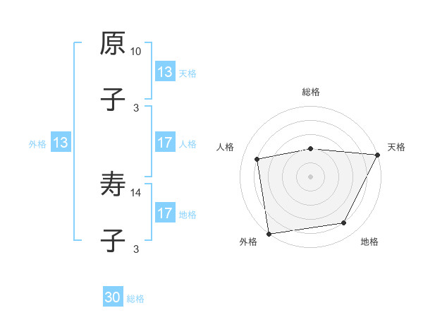 原子 寿子さんの外格は13画の5点!