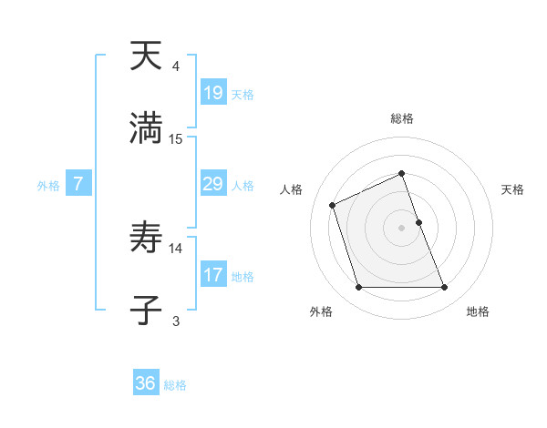 天満 寿子さんの天格は19画の1点!