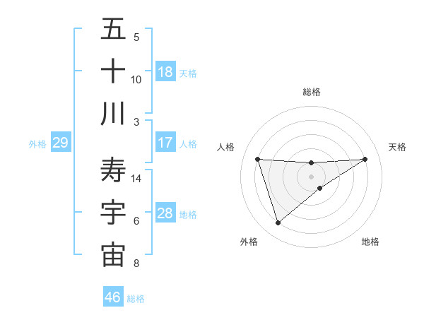 五十川 寿宇宙さんを姓名の画数から五運を鑑定