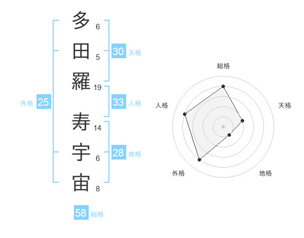 多田羅 寿宇宙さんを姓名の画数から五運を鑑定