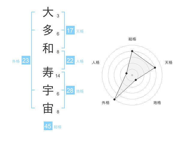 大多和 寿宇宙さんの総格は45画の4点!