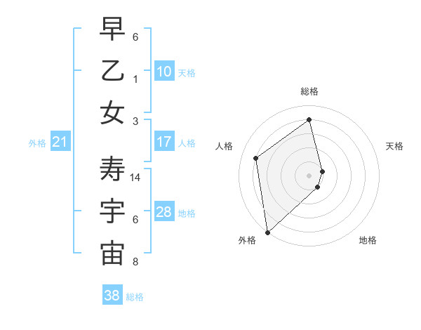 早乙女 寿宇宙さんの総格は38画の4点!