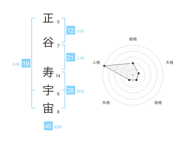正谷 寿宇宙さんを姓名の画数から五運を鑑定
