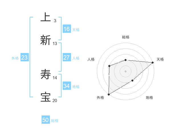 上新 寿宝さんの総格は50画の2点!