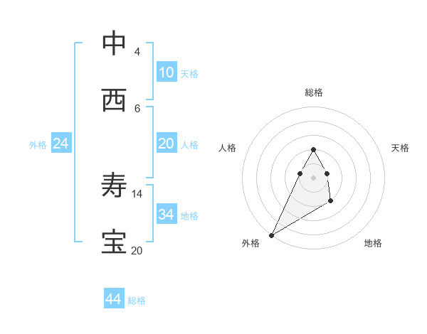 中西 寿宝さんの総格は44画の2点!