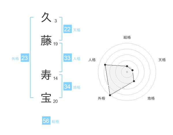 久藤 寿宝さんを姓名の画数から五運を鑑定