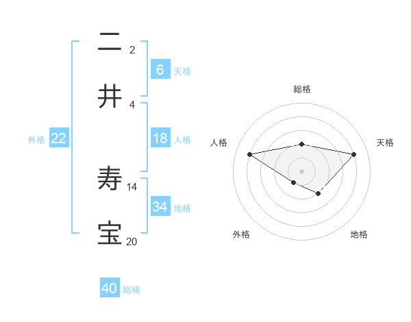 二井 寿宝さんを姓名の画数から五運を鑑定