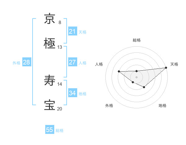京極 寿宝さんの天格は21画の5点!