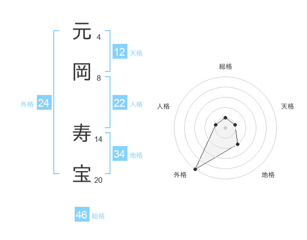 元岡 寿宝さんの総格は46画の1点!